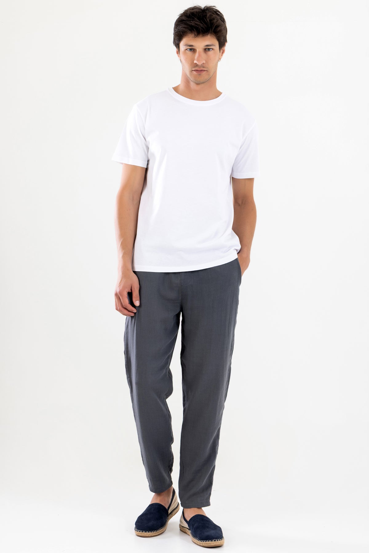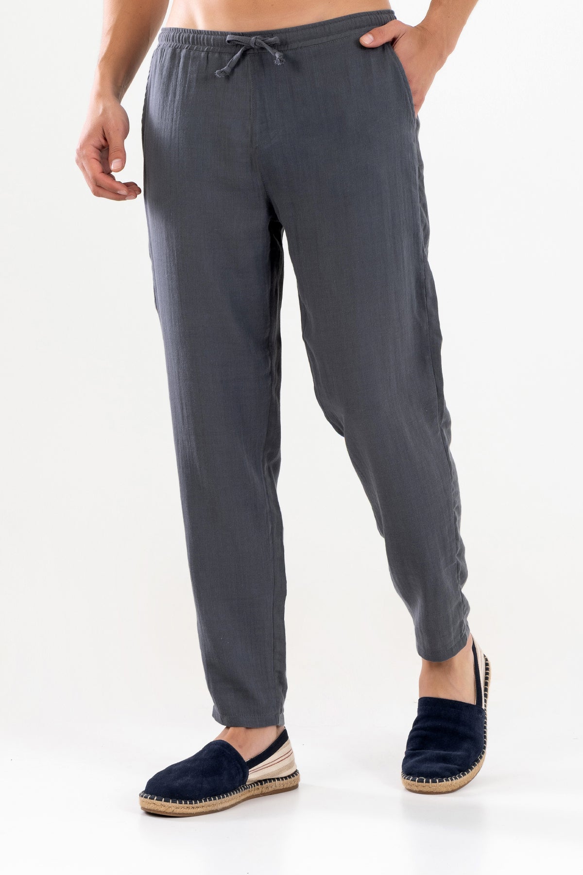 Dar Paça Beli Bağcıklı Erkek Müslin Pantolon - Füme